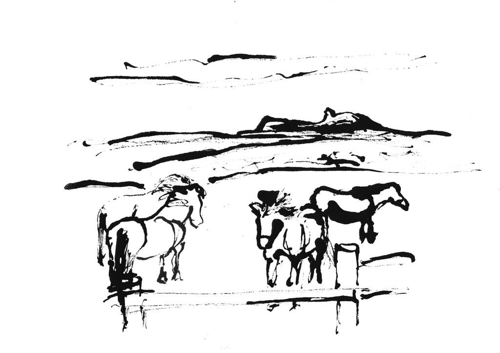 A hedge sparrow or dunnock burst into song quite close to us and we were able to compare its solo efforts to that of the robin. The hedge sparrow’s song is more fluid and fluent and a richer burbling than the slightly harsher, mournful, colder song of the robin. The day was one of the first days of spring. There were occasional glimpses of sunshine and the temperature up at least twelve degrees from the day before. We have been watching and listening carefully to TV and radio for this improvement. One can only hope that the warmth will stay with us. The buds on the elm were nicely rounded and alder catkins hung in long rich dark red tails from the branches. Some whin was starting to yellow. It will be some time yet before the “yellow comes on the broom”. We saw another lovely flash of yellow as a pair of grey wagtails flew down a burn. We were prepared to offer a Cornhill pony a digestive biscuit and a polo mint, but, wise beast, he was having nothing to do with foreigners from Forglen.