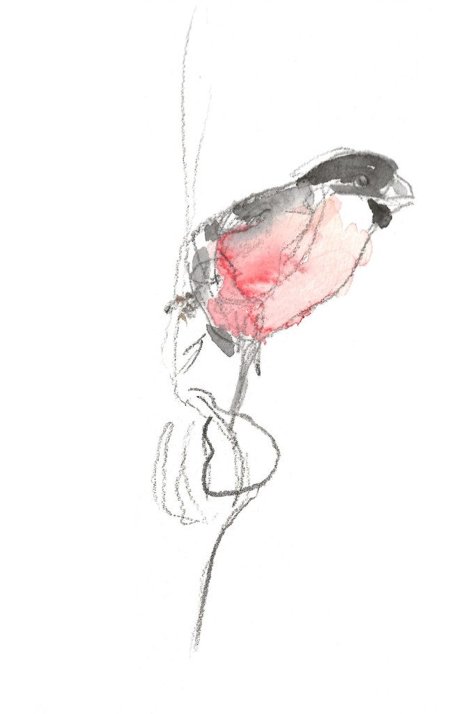 This particular cock bird was a big one, so big in fact in comparison to our bird-table regulars, the blue tit, coal tit and great tit, that I had to get the binoculars to make sure that it wasn’t something more rare like a hawfinch. However, it could have been a Northern European variety of bullfinch which is distinctly larger and more colourful than its British counterpart. Our bullfinch is smaller than the chaffinch by a quarter of an inch, so we might, indeed, have seen a rarity. When everything in the garden is so drab with some exceptions like the periwinkle, the snowdrops, the aconites, and the dogwood bark, the bullfinch in his brilliant plumage, is very noticeable.